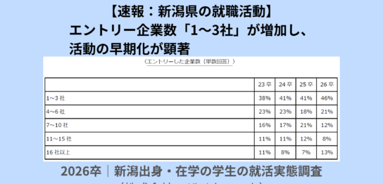 【速報:新潟県の就職活動】エントリー企業数「1~3社」が増加し、活動の早期化が顕著