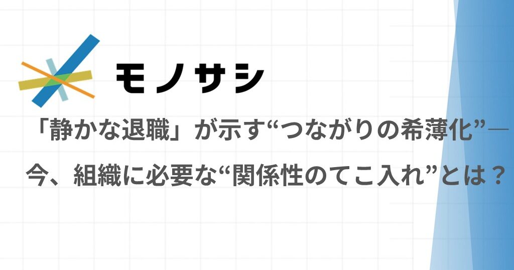 働き方が多様化し、ハイブリッド勤務が当たり前になる今、組織の中で“静かに距離を取る人”が増えていることに、私たちはどれだけ気づけているでしょうか。
